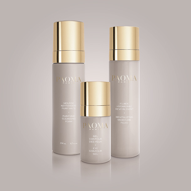 Design de la nouvelle gamme ‘Pour Tous’ de PAOMA (3 flacons, 2 recharges, 4 étuis) : artwork, EXE et packshots (prise de vue, retouche et intégration des artworks en 3D), à retrouver sur le site Internet paomaparis.fr.