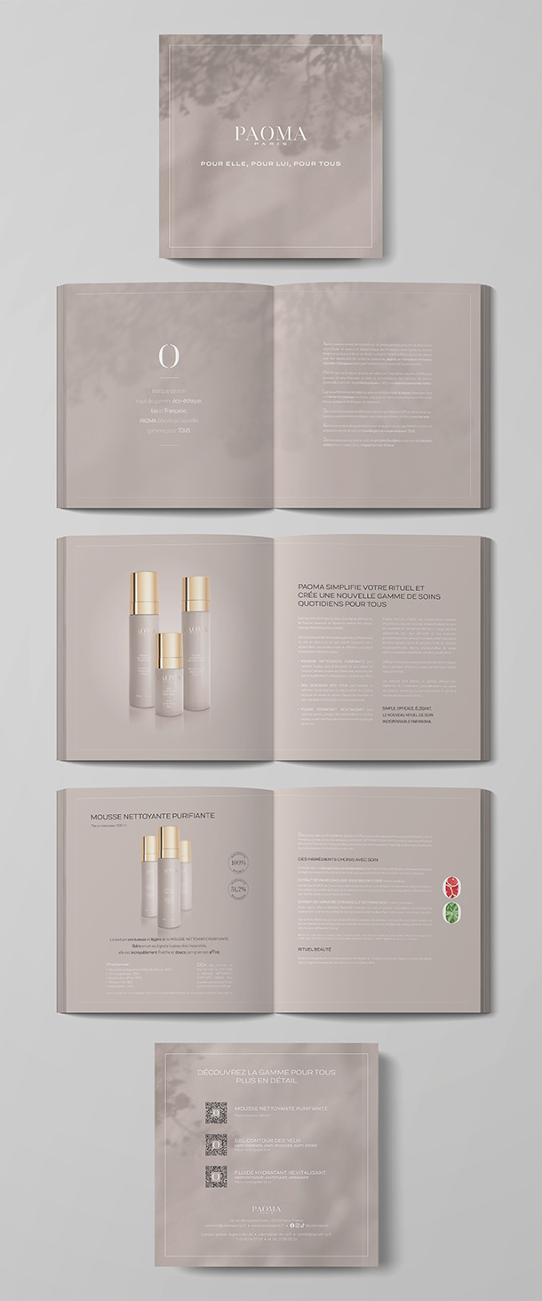 Charte graphique et mise en page sur le modèle de celui réalisé pour la gamme Hyalluressence d’un Dossier de Presse présentant la nouvelle gamme POUR TOUS (16 pages en FR et EN).