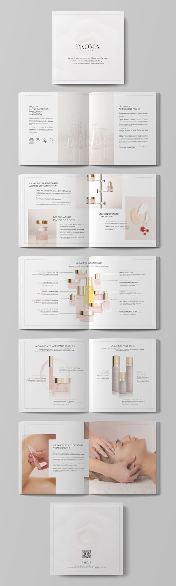 Charte graphique, dans l’esprit des dossiers de presse déjà réalisés pour la marque, et mise en page d’une plaquette commerciale présentant l’ensemble des gammes PAOMA (12 pages).